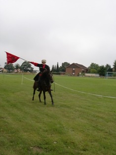 Elbrus befindet sich zur Zeit in der Ausbildungsphase zum Trickreiten und Umgang mit Waffen. Mit ihm wurde erst eine Grundlage in Dressur geschaffen und er hat sich bereits an Menschen gewöhnt.