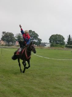 Kasbitch befindet sich zur Zeit in der Ausbildungsphase zum Trickreiten und Umgang mit Waffen. Mit ihm wurde erst eine Grundlage in Dressur geschaffen und er hat sich bereits an Menschen gewöhnt. Er hat Vertrauen in den Menschen und lässt sich auch ohne Sattel mit einfachem Halfter sehr gut reiten.